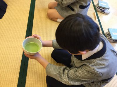 お茶を点てるところは、みんな大好き!あっという間に、クリーミーなお抹茶を点てることができました。萩崎先生が点てられたお茶は、別格です!