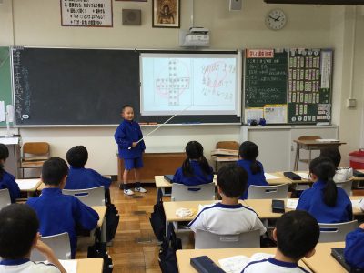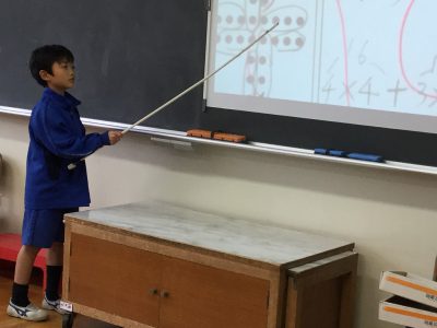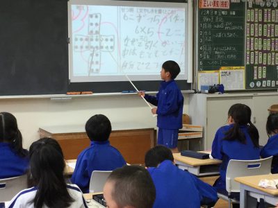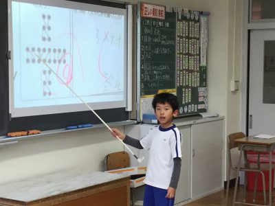 こちらは、昼根っ子の時間です。「九九を広げて」の答えの解き方を紹介しているところです。