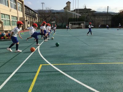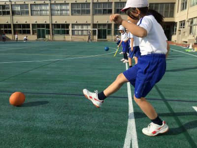 そして、新メニューの“ならびっ子キックベース”の準備を行いました。