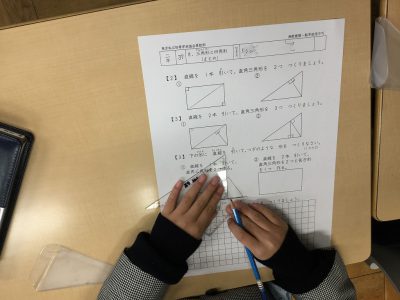算数の学習は、『三角形と四角形』のまとめに入っています。
