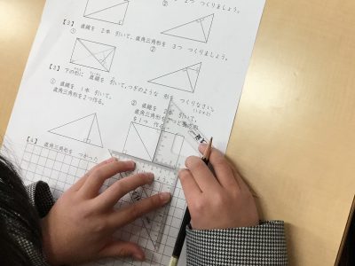今週は、2枚の三角定規を操作して“直角をかく(つくる)”活動を進めています。