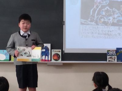 2日に分けて設けた『読書紹介』の時間が終わりました。おすすめする本のあらすじや、心に残る場面を紹介しています。