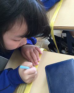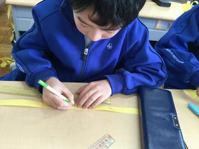 切り分けた後は、自分の机で“目盛り書き”の時間です。