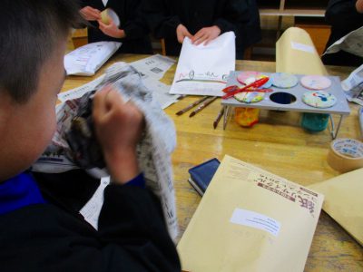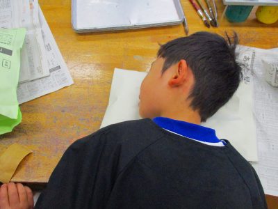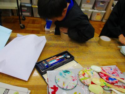 造形室へ戻れば、色づけを。