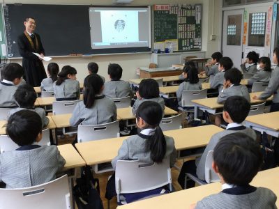 長谷川先生から「知恵のある子・マホサダー」と「500匹の猿の父のお話・サルの橋」の二つのお話を聞かせていただきました。