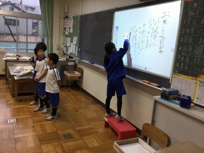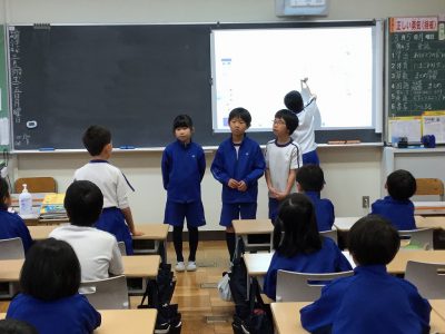 学活の後半は「お楽しみ会Ⅲ」の計画を話し合っています。