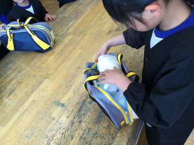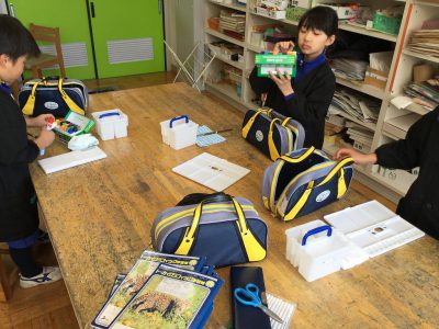 倉掛先生から、「さっ、それではしまってみましょう!」と声がかかり、みんなは、???そうです。準備と後始末がきっちりできてこそ、絵の具の学習がばっちりと進めるのですね。来週をお楽しみに!
