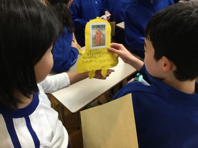 6年生のみなさんが、2年生の終わりに書いた「自分へのメッセージ」付き掲示物です。