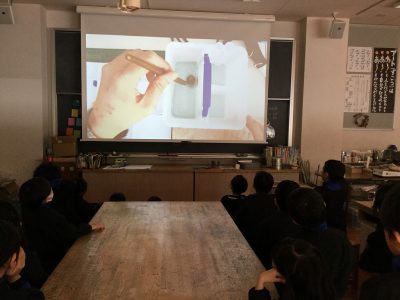 「ひっせ~ん(筆洗)!」と、この後長くおつきあいする道具の名前、ばっちりです。