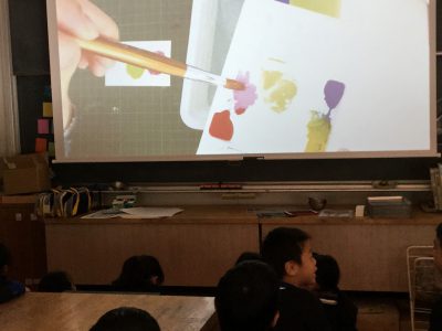 「パレットに、色と色を出合わせましょう!」とみんなに呼びかけて下さいました。
