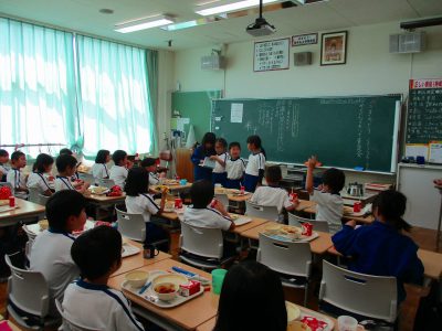 給食時間には、なぞなぞクイズ係さんが楽しいクイズを4問出題してくれました。