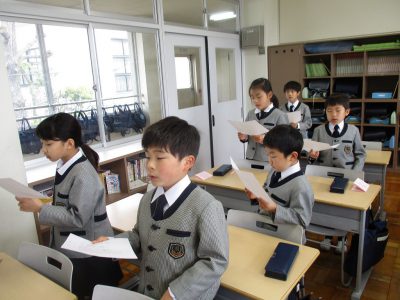 みんなで声をそろえて、意味を確認しながら音読しました。