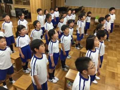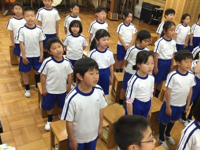 れんげデビュー集会で歌う「♪あの青い空のように」は、2年生の時にばっちり練習しています。