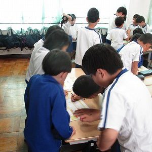 今日の学活では、自分の目標を考えてプリントに書くことから始めました。