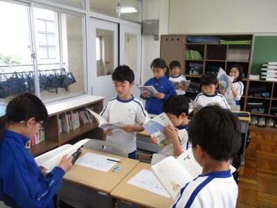 そして、場面の様子を思いうかべながら、それが伝わるように音読の練習をしました。