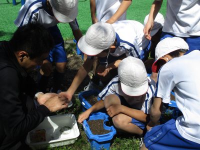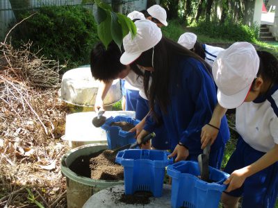 理科は「ほうせんか」と「マリーゴールド」の種植えをしました。