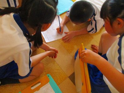 そのことを実践しているグループや、書き方を教えてあげているグループ、見守るグループと、いろいろ工夫しながら、楽しく進めることができました。