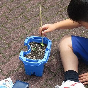 種植えをして二週間、毎日、日直さんが水やりをしてお世話しています。
