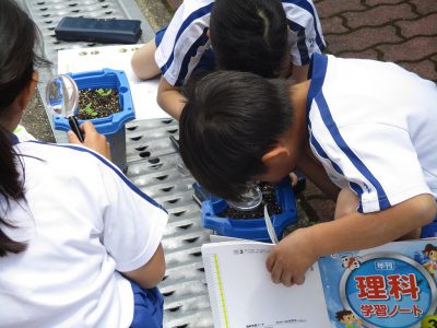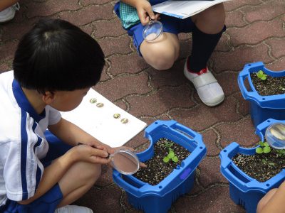 理科の時間に、マリーゴールドとホウセンカの芽を観察しに行くと…