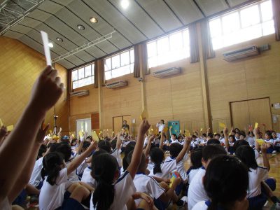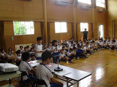 ステージ1では、学級代表さんが、3年生の取り組みを報告してくれました。
