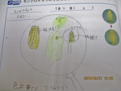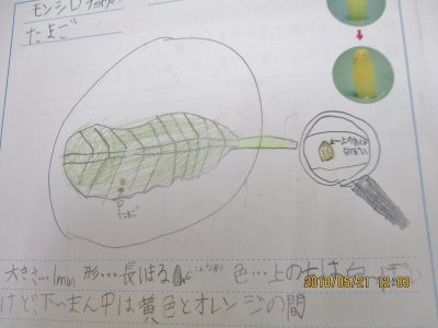 学習ノートに「モンシロチョウの卵」をスケッチしました。