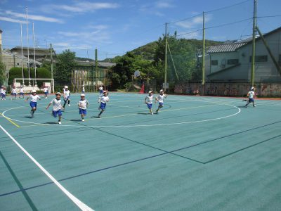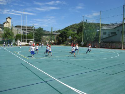 四色に分かれて、走る練習をしています。
