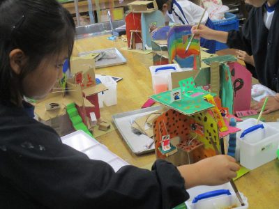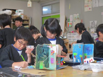 図工は、「4つの世界」の作品の仕上げをしました。