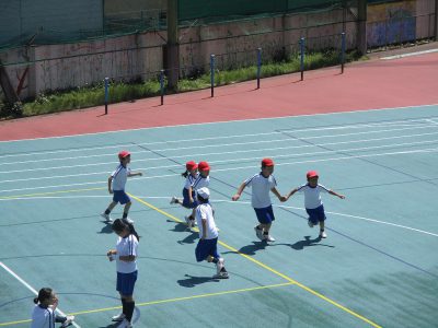 休み時間は、みんなあそび「手つなぎ鬼」をしました。