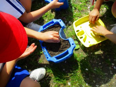 ひと足お先に、晴天の元、2年生が種まきをしました。