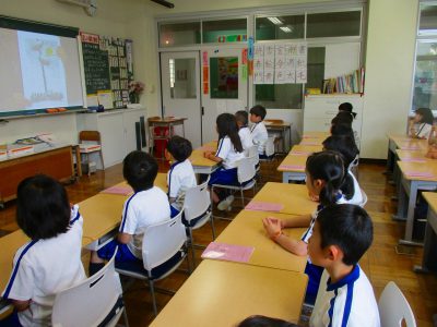 全校で一人一鉢のヒメヒマワリを育てる活動です。