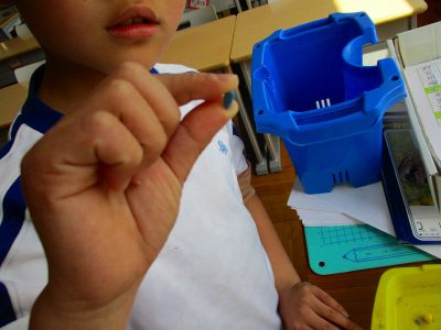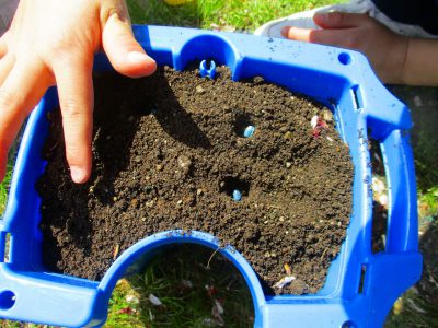 土に種をまくためのくぼみを作るのも、レクチャーしています。