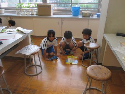 理科の学習は、前半が「モンシロチョウの観察」後半は「ゴムのはたらき」でした。