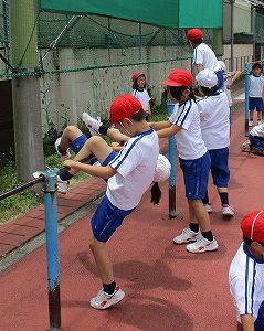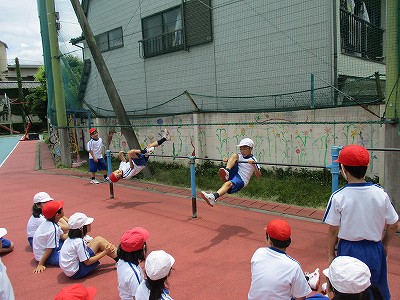 鉄棒にひざをかけてチャレンジするも…ほとんどの人が苦戦する中、