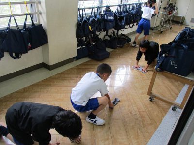 早く終わった人が、墨のよごれをぞうきんがけできれいにしてくれました。