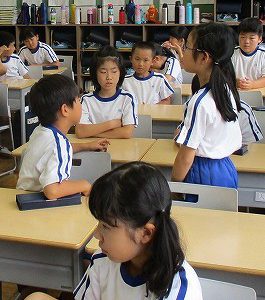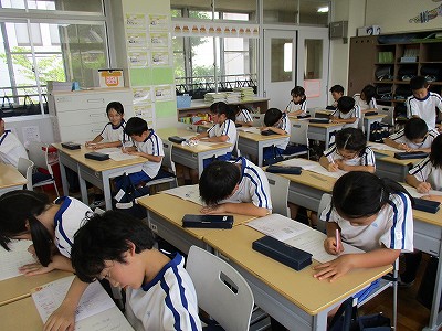 1時間目の学活では、学校生活を振り返り、話し合いをしました。