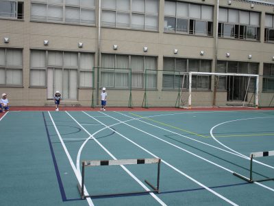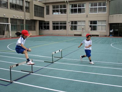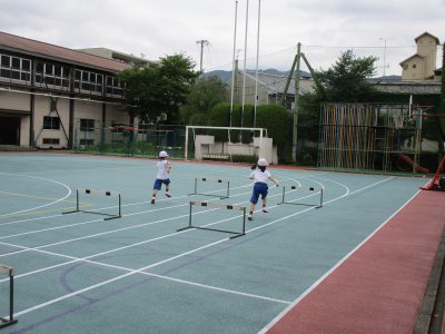 体育のハードル走です。