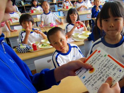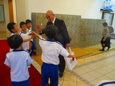 初日……校長先生と交わすことができたのですが、午前8時~8時10分の間だと、あまり人が来ない…ということに気づいたメンバー(1,2チームさん)。