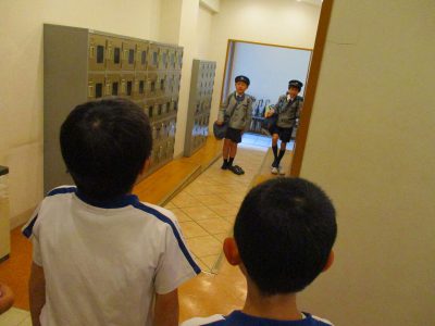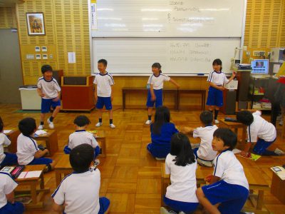 【あいさつ返し】が弱い自分たちができること……と学級会を重ね、「玄関でやってみよう!」と決定しました。