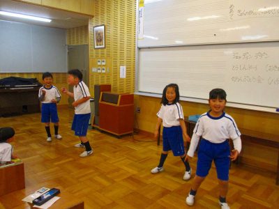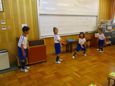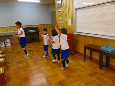 この前から“曲の感じに合わせて体を動かそう”という題材で、身体表現に取り組んでいます。