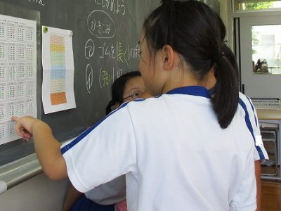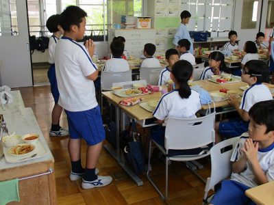 当番や号令は、高学年が担当します。