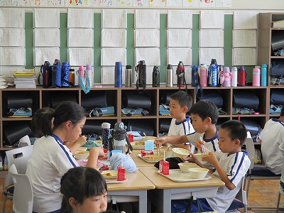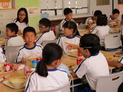 朝の教室では、週末の出来事を友達と話したり、今日の給食のことを話したりと、楽しみにしている様子がありました。