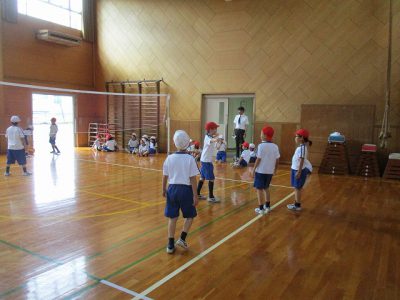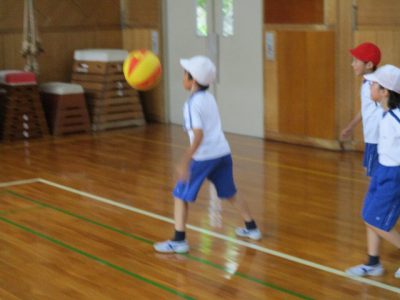 体育は、途中で雨が降ってきたので、体育館でバレーボールをしました。