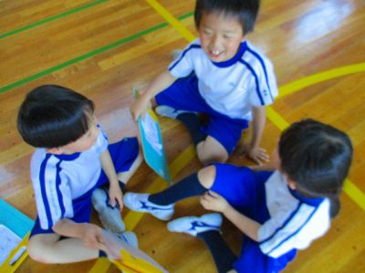 太陽の光がまぶしく、さわやかな休み明けの体育です。