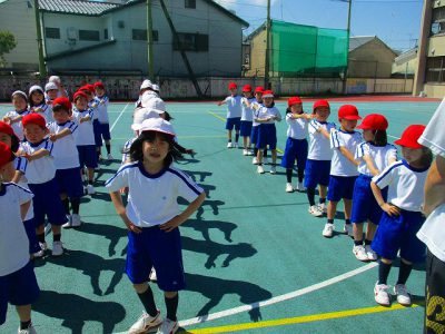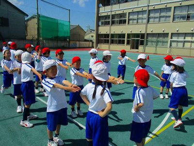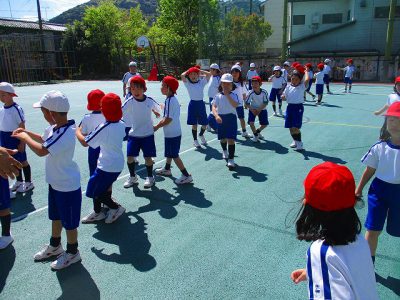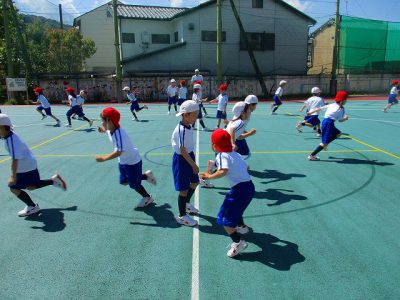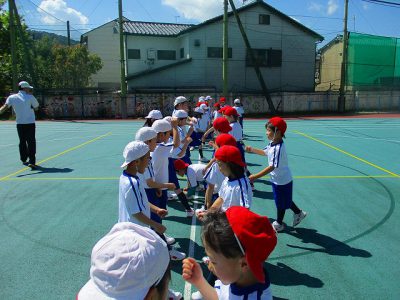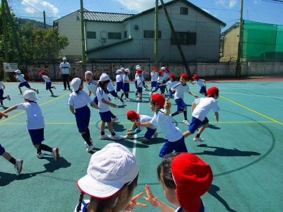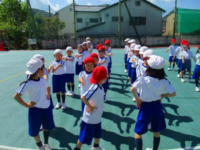 『じゃんけん鬼』で体づくりの運動を行っています。