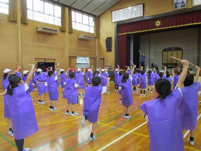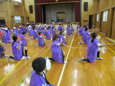 午後はあいにくの雨で、今日の運動会の練習は体育館で行いました。