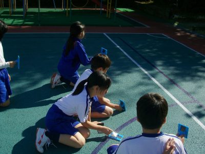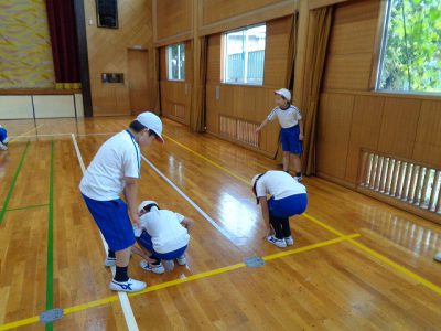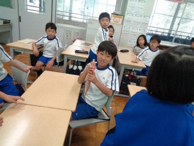 体育でとび箱の練習を続けてきましたが、今日はみんなで馬とびに挑戦しました。