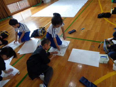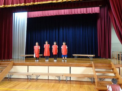 今日は、発表で使う衣装を着たり、お面作りをしたり、準備を進めました。
