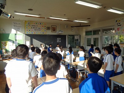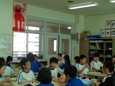れんげスクールランチ二日目の3年生教室は、昨日に比べてにぎやかで、和気あいあいとおいしく給食をいただきました。