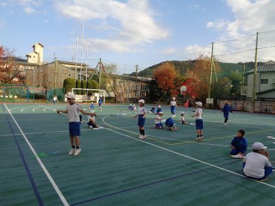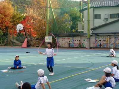 体育では、なわとびの持久跳びで、5分を目指して2回目の挑戦。