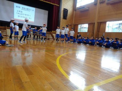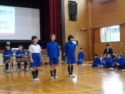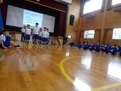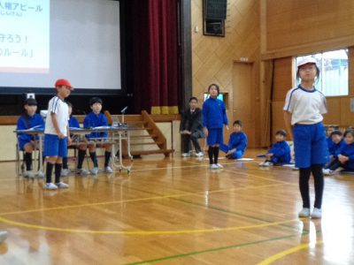 3年生は、休み時間の遊びを再現し、みんなで楽しく遊ぶために何が大切か、自分逹で考えたことを伝えました。